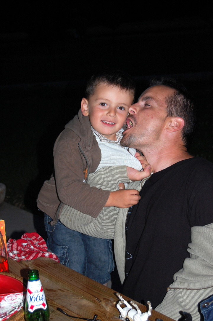 Nous en avons profité pour fêter la malheureuse rencontre du scooter de mon Papa avec une Citroën C5. Mon Papa était le premier témoin de cette rencontre, car il chevauchait son scooter les cheveux au vent. Beaucoup de peur, mais rien de mal, tout le monde va bien. Le plus touché serait encore le scooter. Ça apprendra mon Papa à jouer les Batman à 2 roues, même s’il n’était absolument pas en tort (contrairement à la vieille de la C5 qui pensait que les rétroviseurs servaient à décorer une voiture).