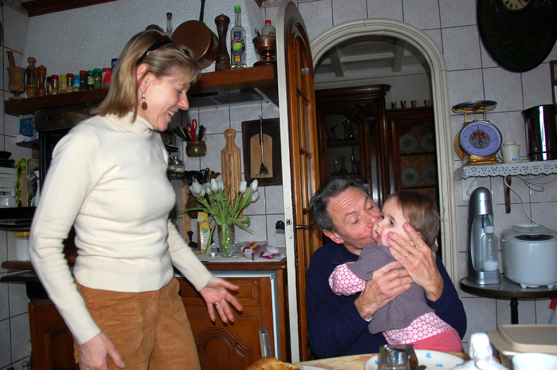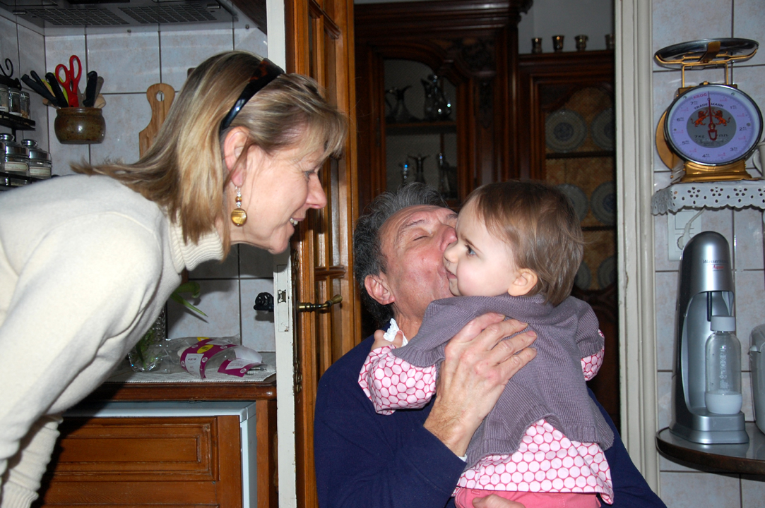 Après, nous sommes allés prendre le thé chez Papy et Mamie. J’ai failli avoir une joue arrachée par les bisous de Papy !