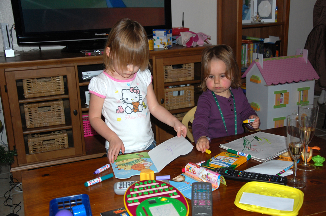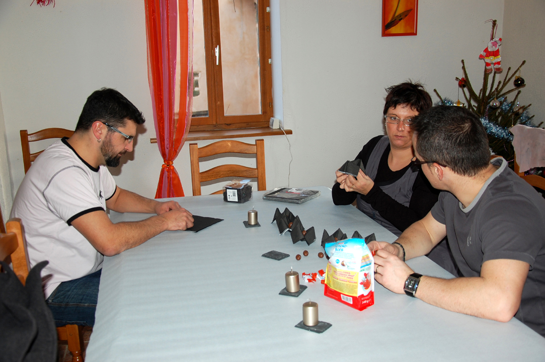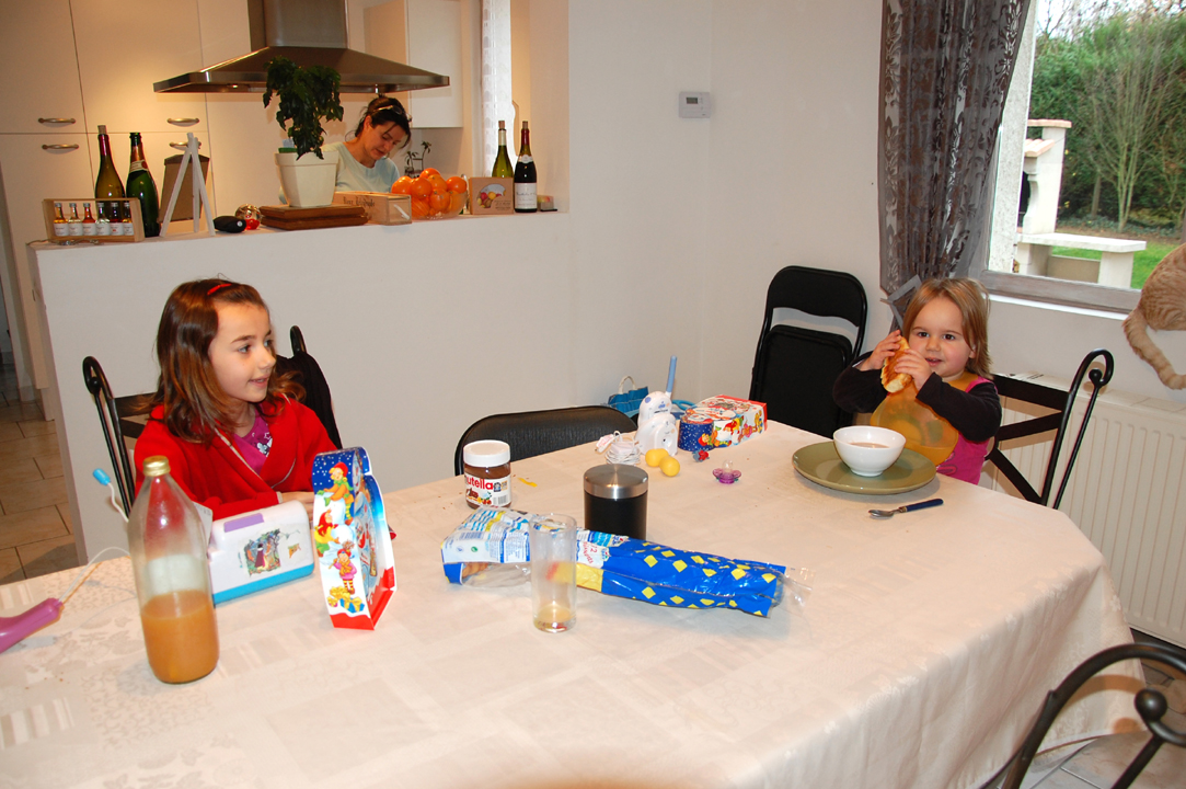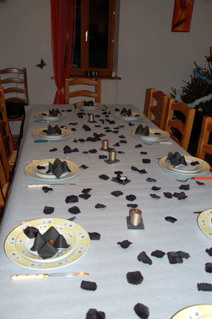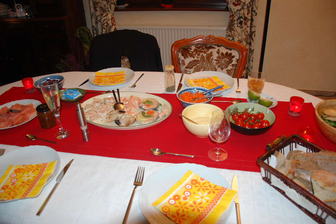 Les préparatifs ont démarré : mise en place de la table, ouverture des huitres par mon Papa (qui en a mangées quelques unes en passant), décoration, … par les grands, tandis que les petits jouaient.