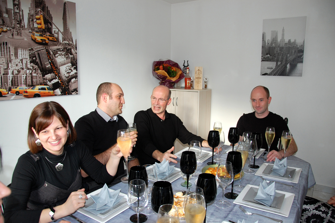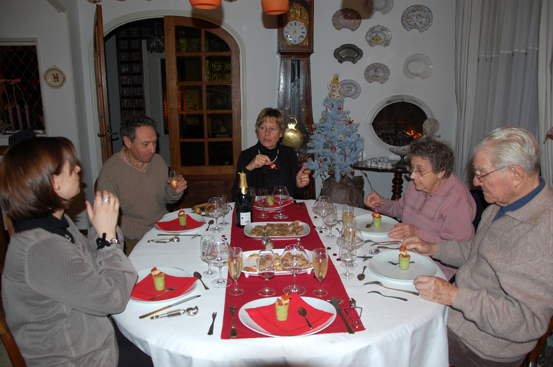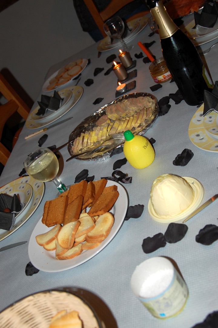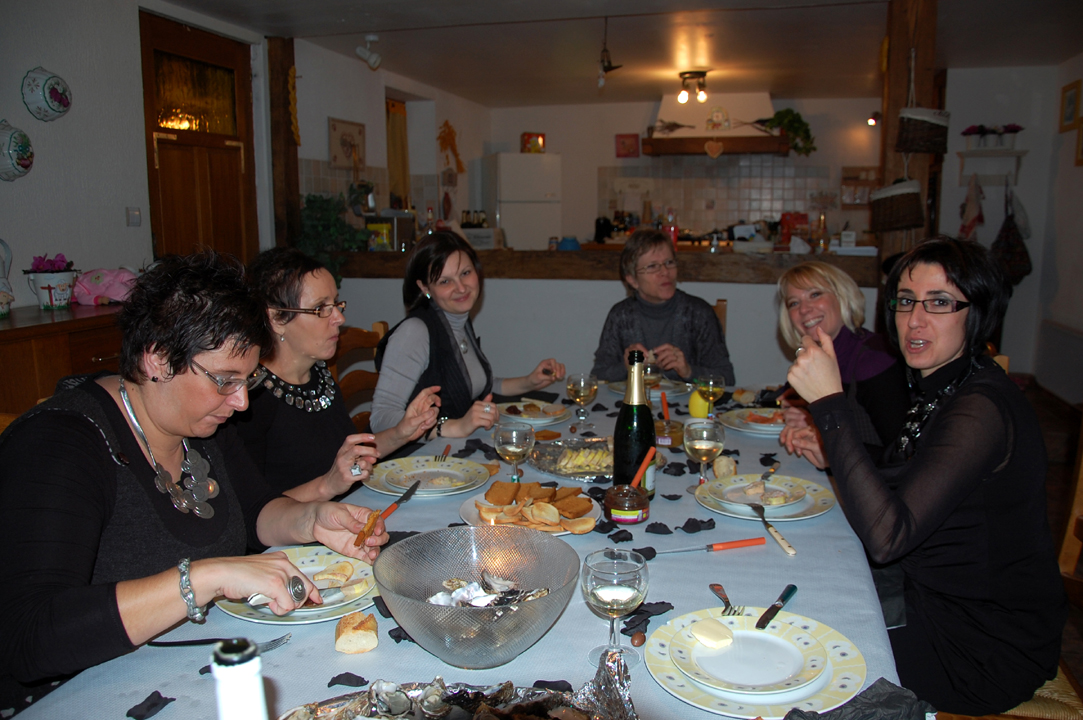 Puis nous sommes passés à table : huitres, foie gras, escargots, saumon en entrée et un excellent filet de boeuf en croûte.