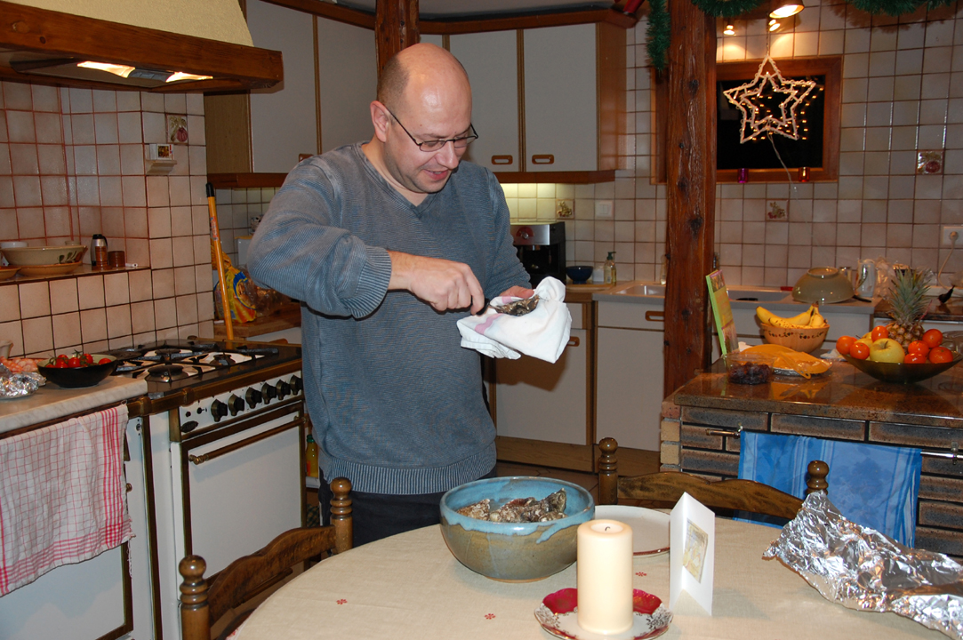 Puis, mon Papa a ouvert les huitres et nous nous sommes préparés pour le réveillon.