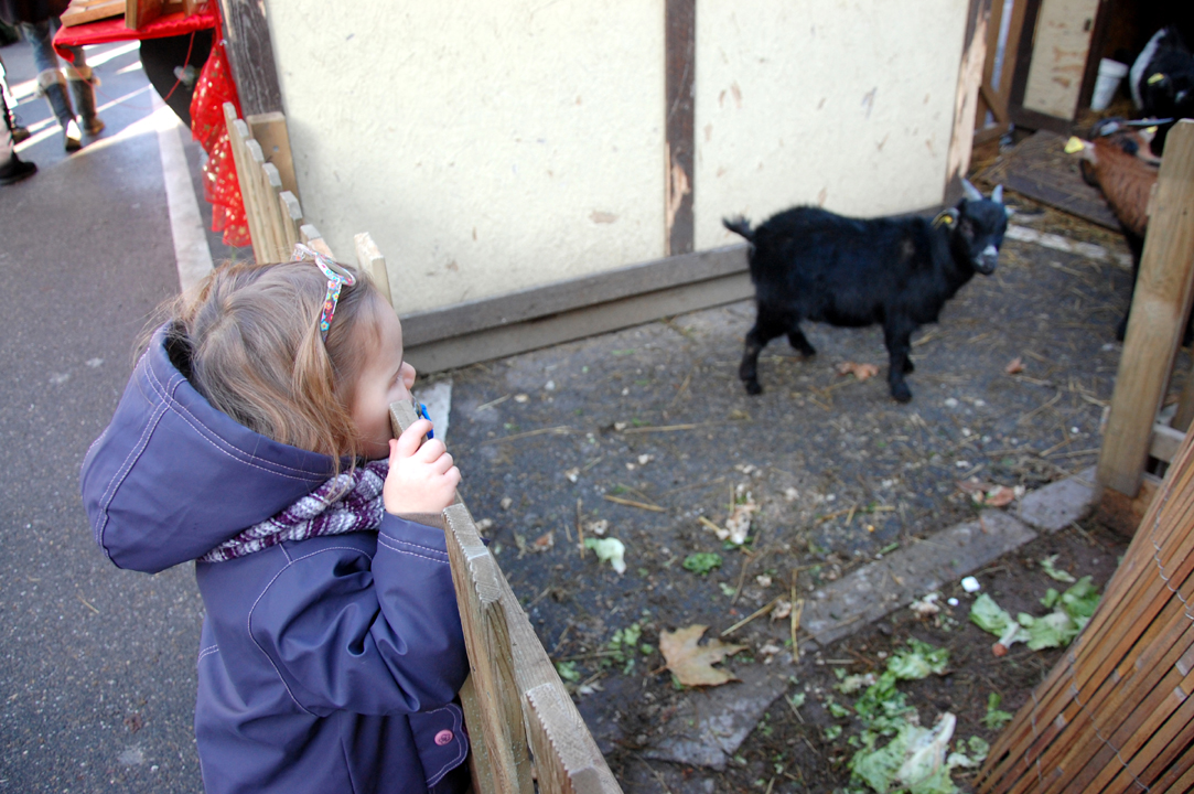 Ce matin, après le petit-déjeuner et une histoire, nous avons profité du marché de Noël, sous le ciel bleu.