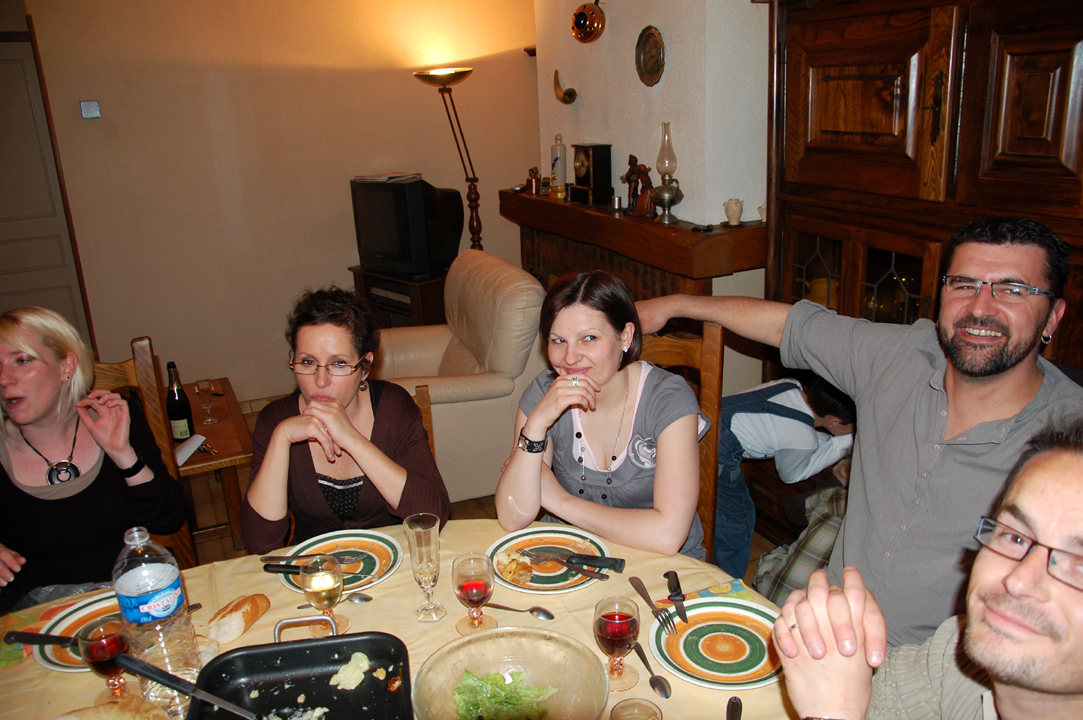 Ce soir, nous sommes allés manger chez la Mamie de Nina, avec Céline, Olivier et Nina ; Steph, David et Ewan ; Linda, Manu et Chloé ; et Vava.
