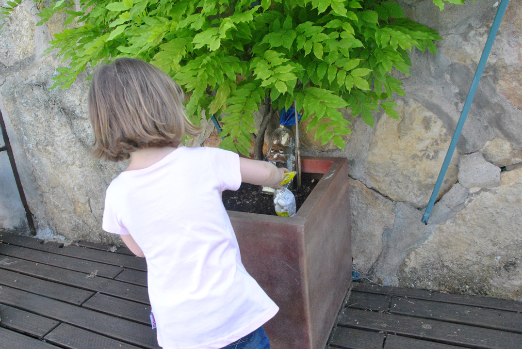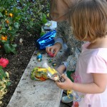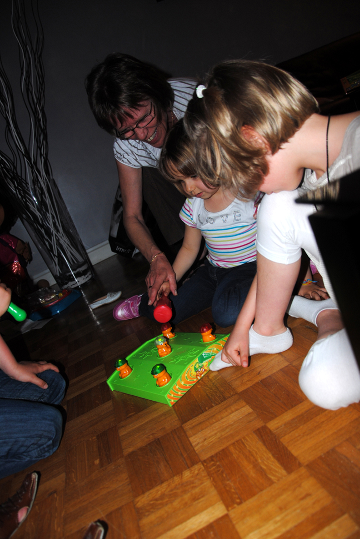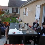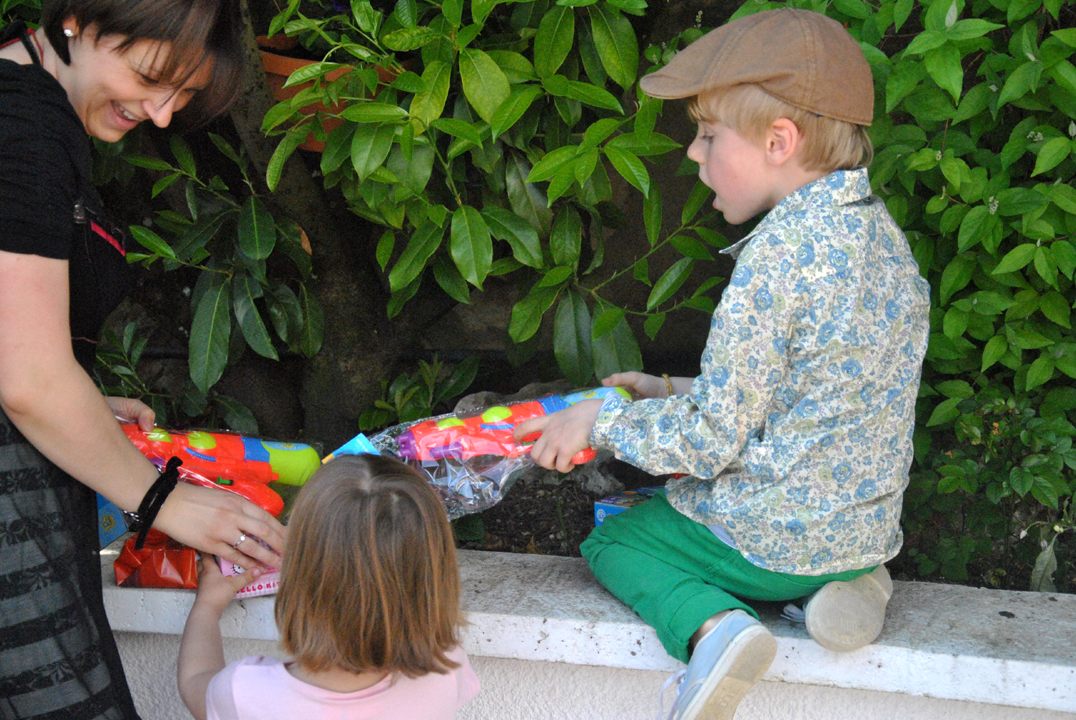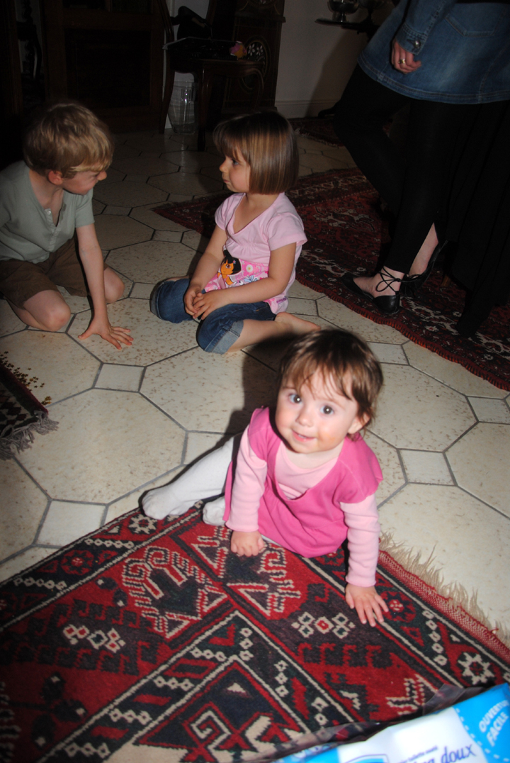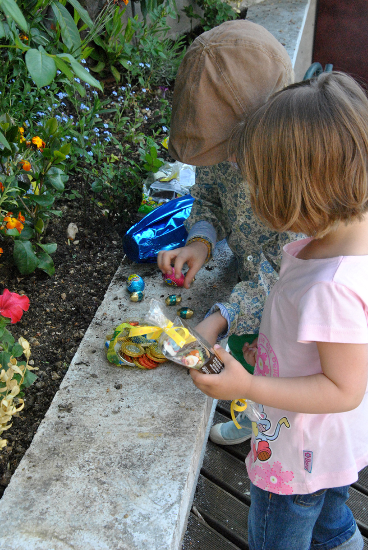 A midi, nous nous sommes tous retrouvés chez Mamie et Papy, avec Mamie Jacqueline, Papy Henry, Claude et Gérard (les parents d’Emma) pour fêter (encore) mes 4 ans, et aussi le premier anniversaire de Hope. On a commencé par chercher les oeufs.