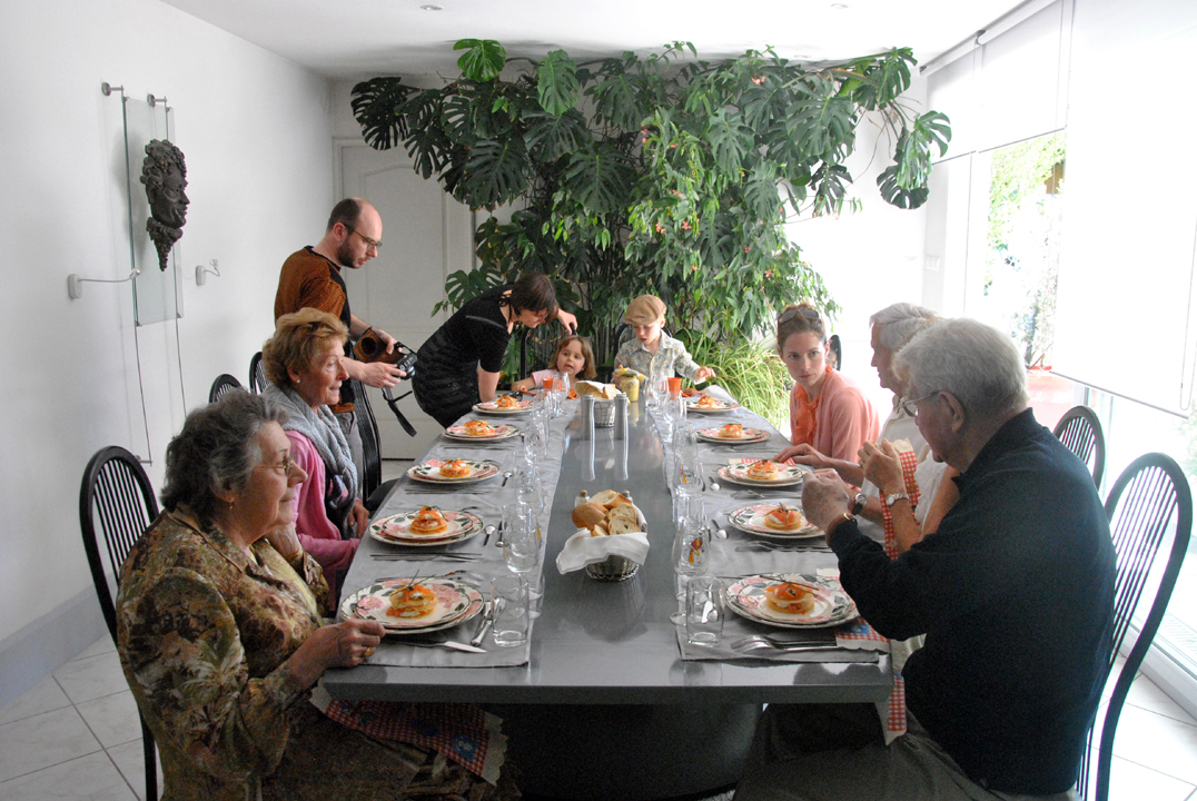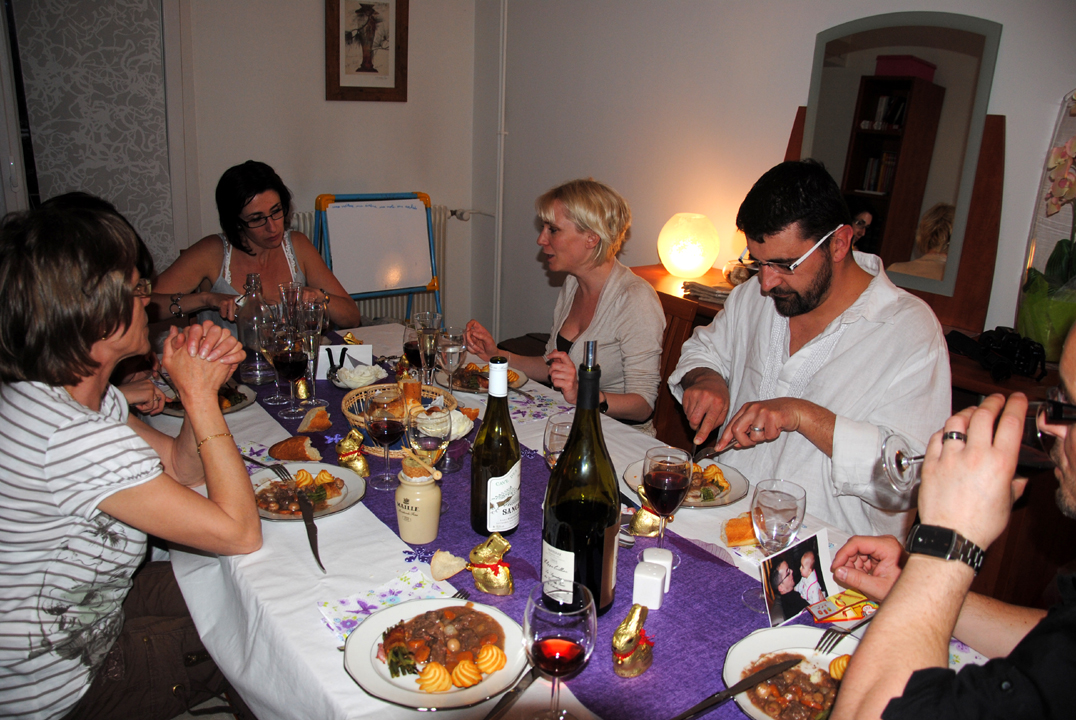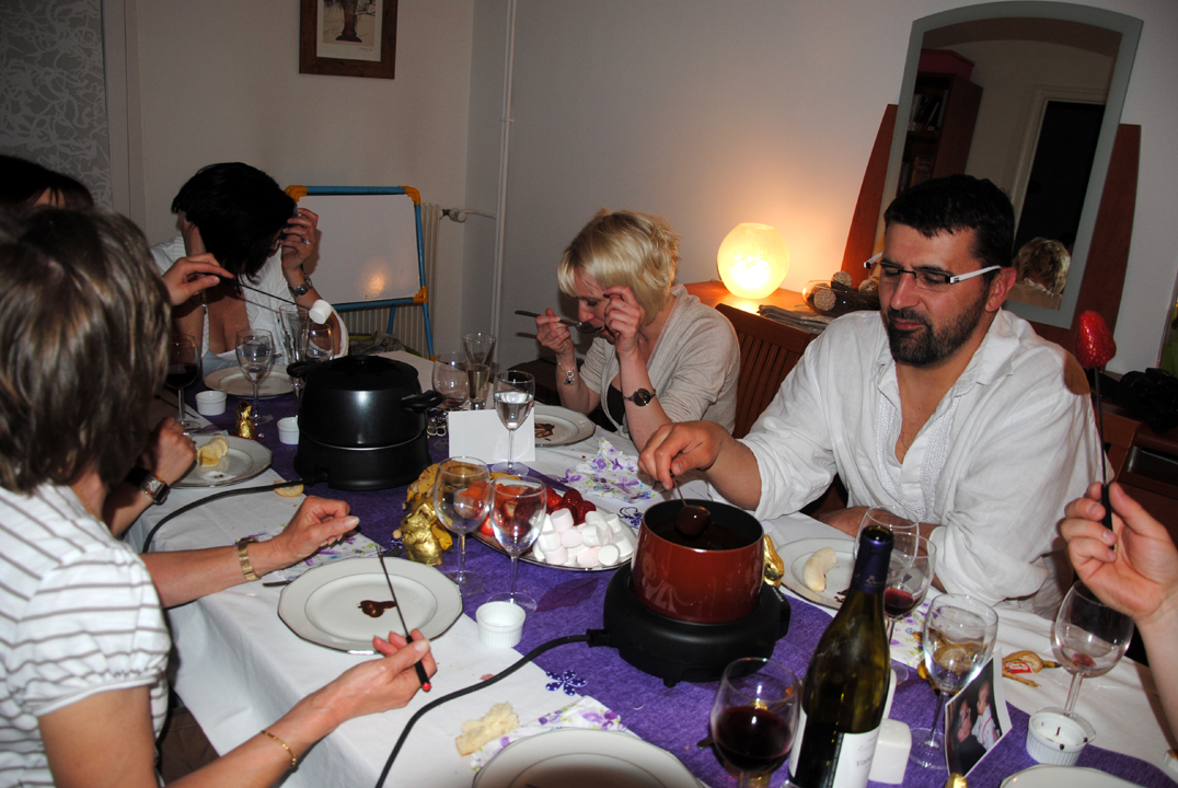 Puis les grands sont passés à table : mille feuille de saumon, boeuf bourguignon et fondue au chocolat.