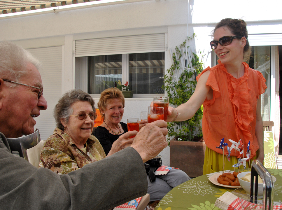 Puis, apéritif anglais, en dégustant du Pims, sur la terrasse.