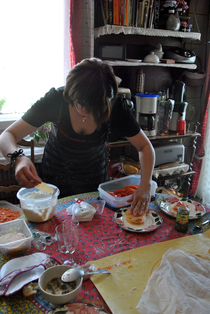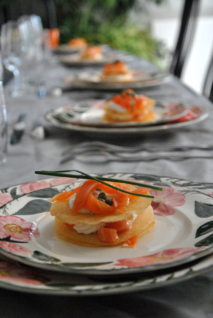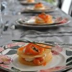 … Mille-Feuilles aux deux saumons, et tourte au poulet et morilles.