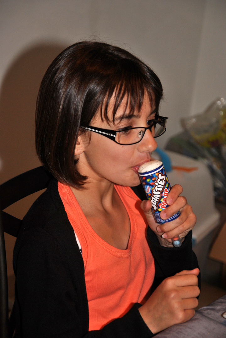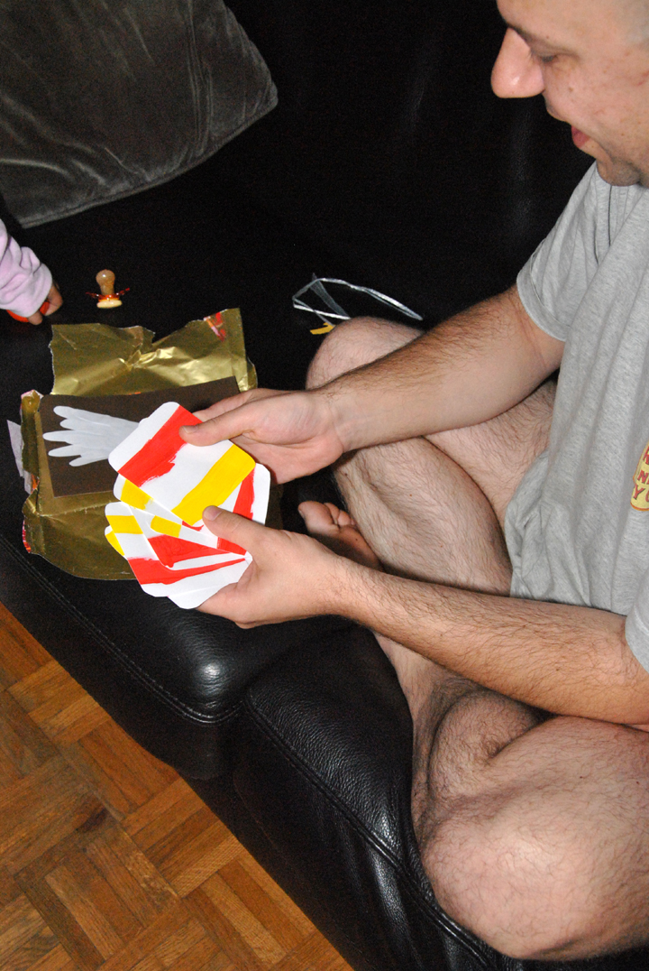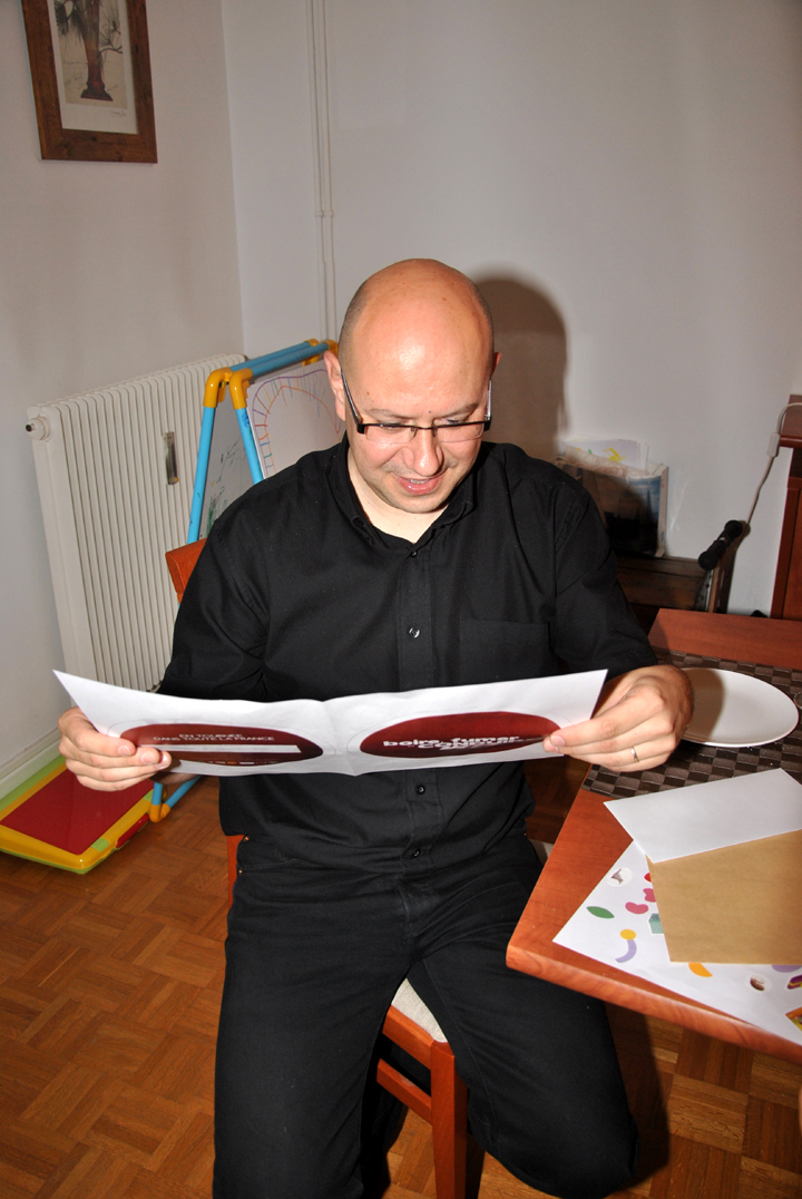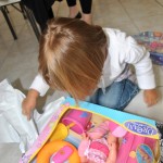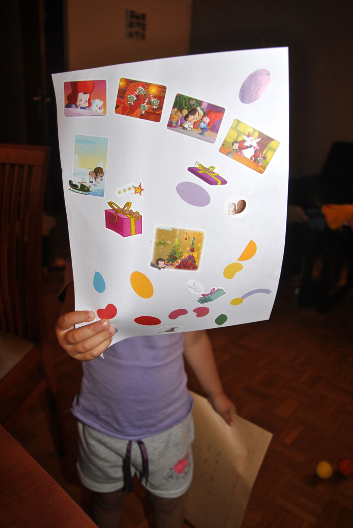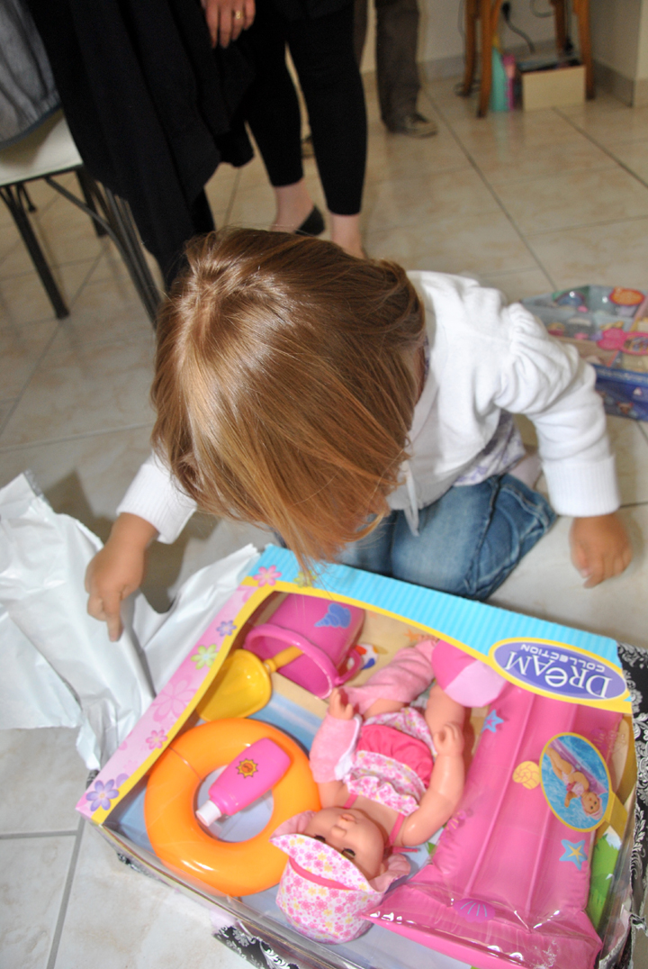 Puis est venue l’heure du gâteau et encore des cadeaux : un dessin-gomettes et une place pour une pièce de théâtre.