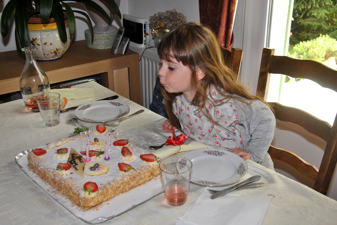 Et à midi, nous sommes allés manger chez les grands-parents d’Antonin et Hope pour fêter les 4 ans de Hope (Antonin a passé ses vacances chez ses autres cousines, donc il n’était pas là).