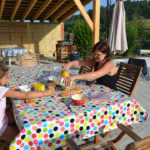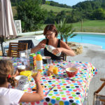 Ce matin, nous avons profité de la terrasse et de la piscine.