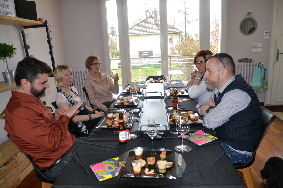 Et à midi, les copains sont venus fêter ça avec nous. Au menu : petite assiette apéritive, plancha et un bon gâteau … sans oublier quelques cadeaux !